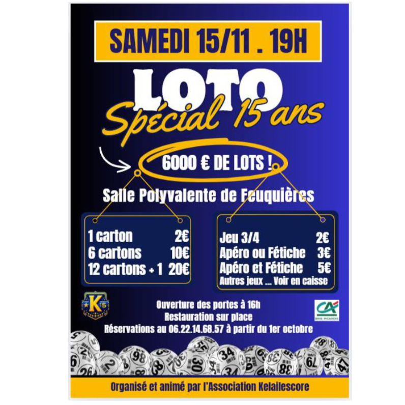L'association KELAILESCORE organise un loto "spécial 15 ans"