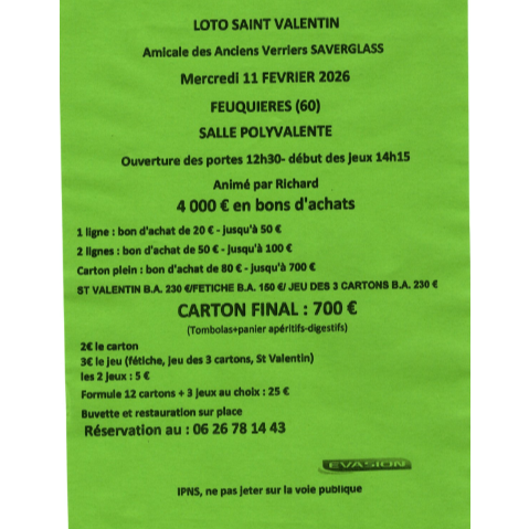 L'Amicale des Anciens Verriers SAVERGLASS organise un loto "SAINT VALENTIN"
