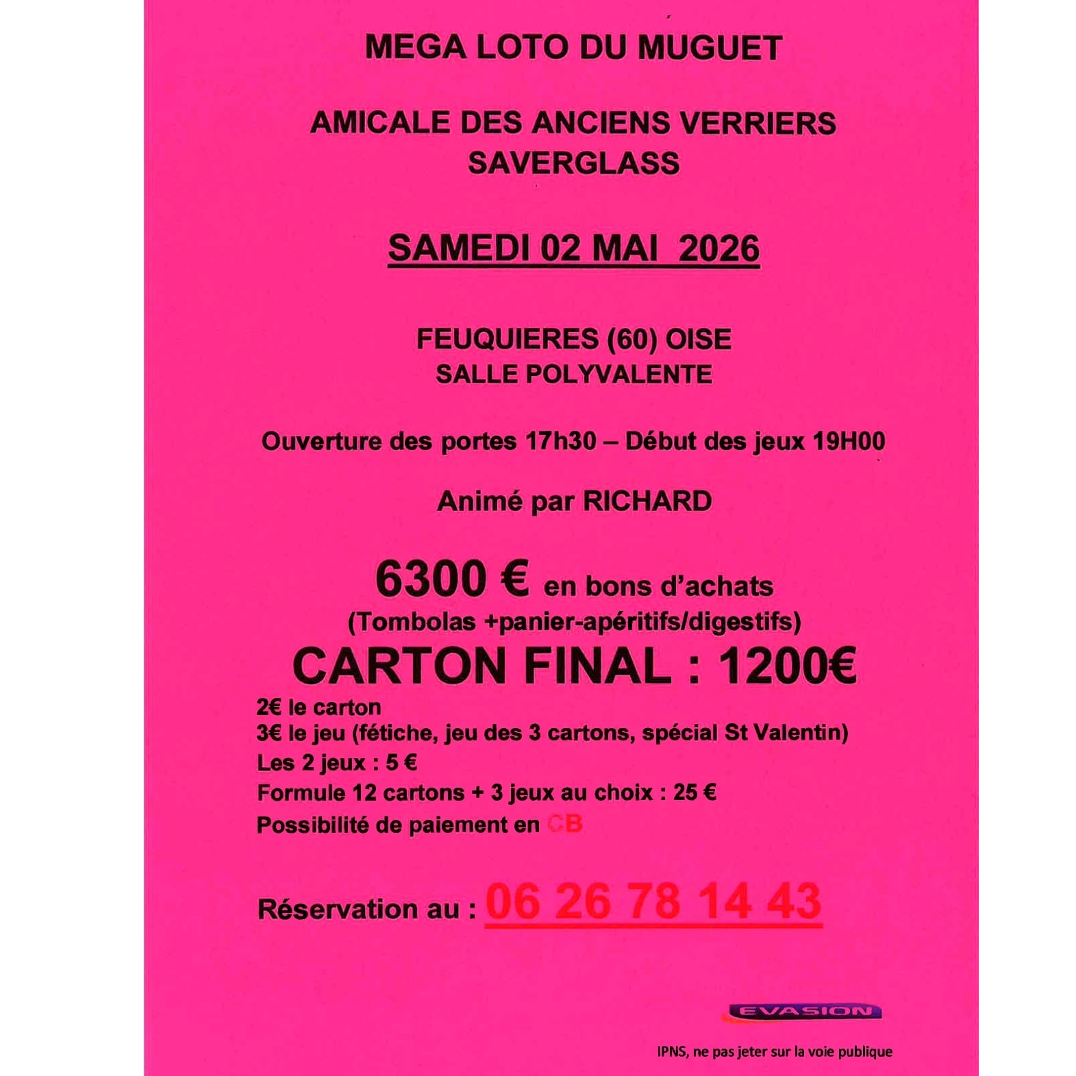 L’amicale des anciens verriers Saverglass a le plaisir de vous inviter à son grand Méga loto du Muguet !
