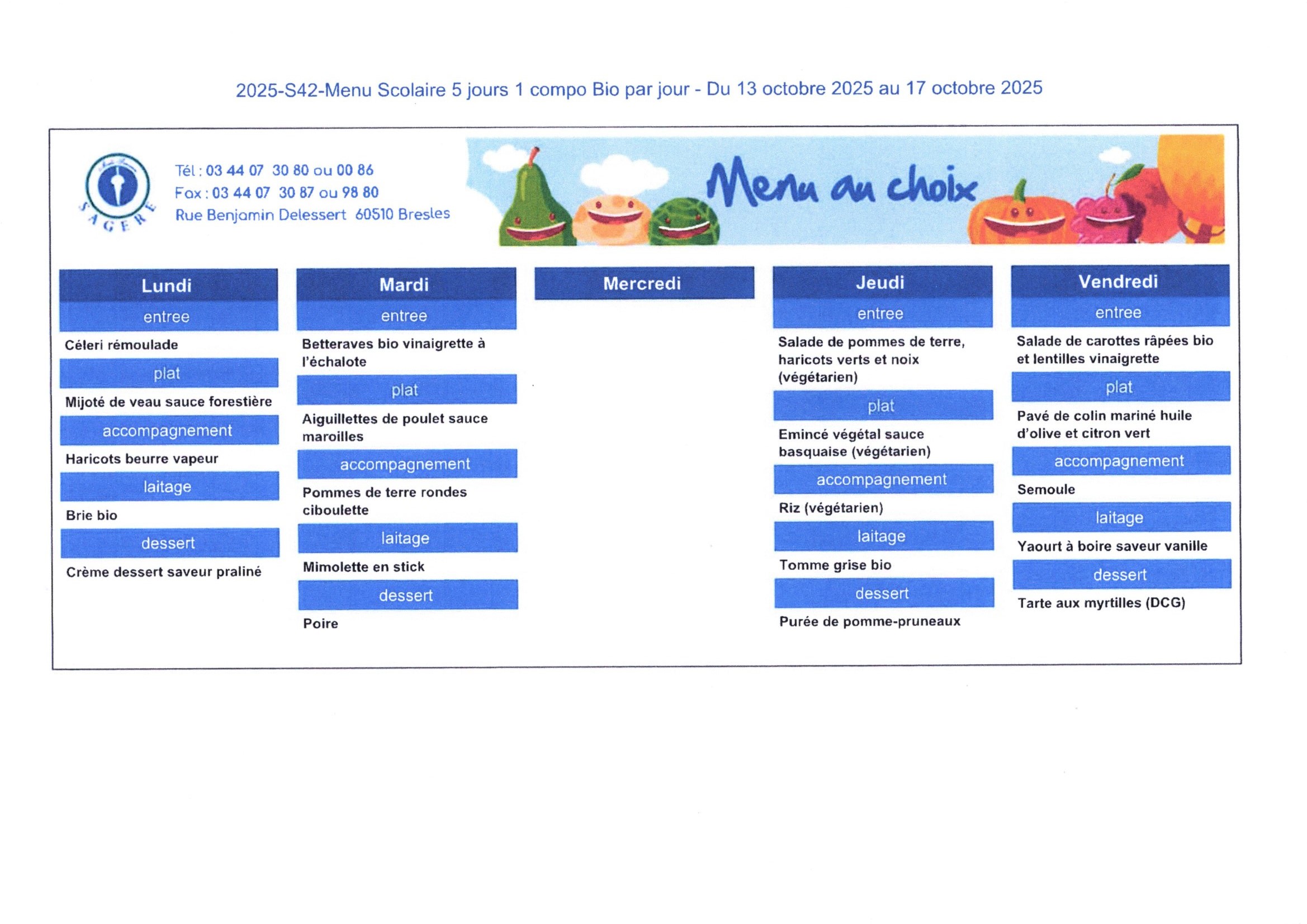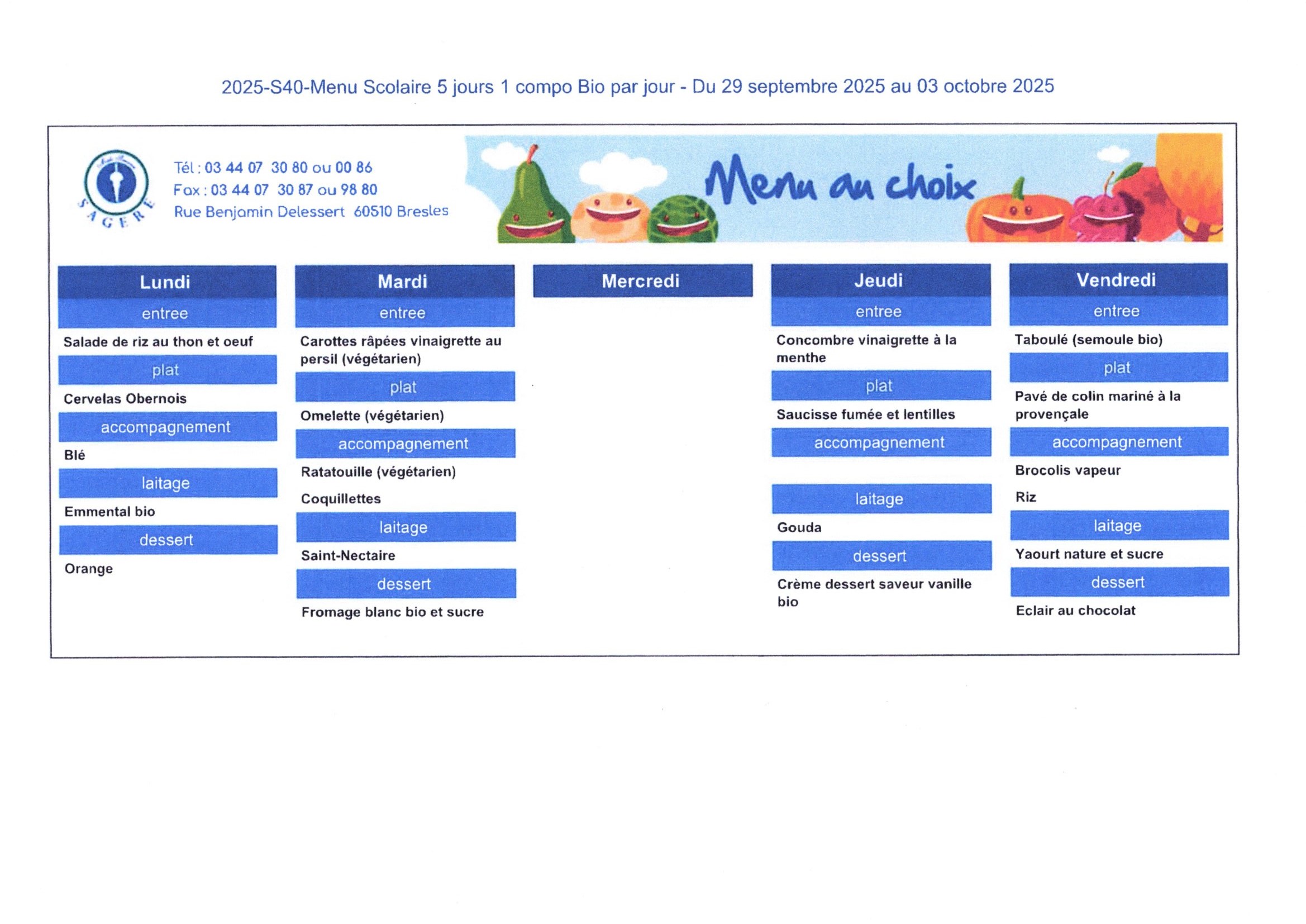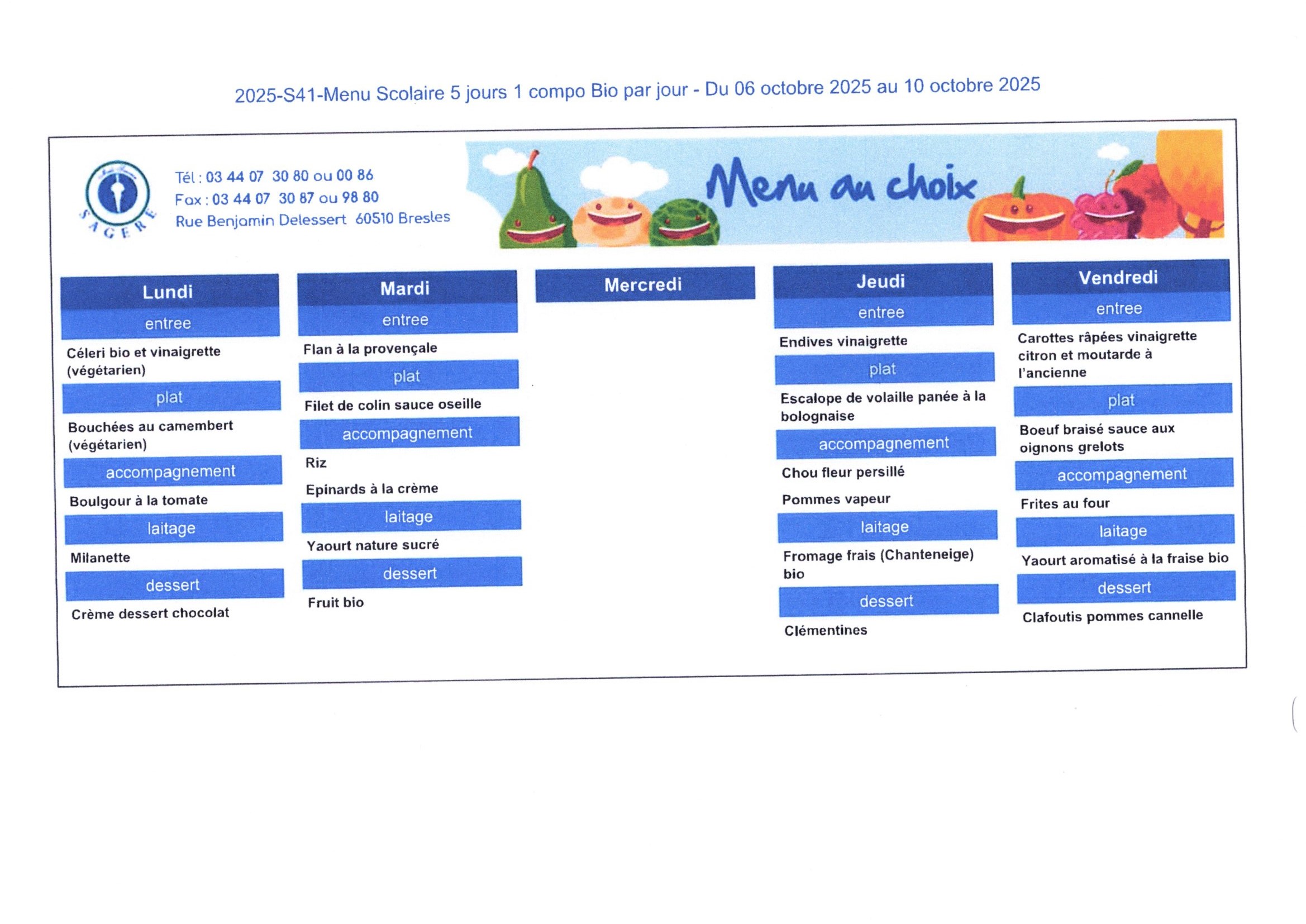 Retrouvez sur cette page les menus prévus pour la restauration scolaire de Feuquières. Nous travaillons avec notre prestataire Sagère pour la préparation et la composition des repas